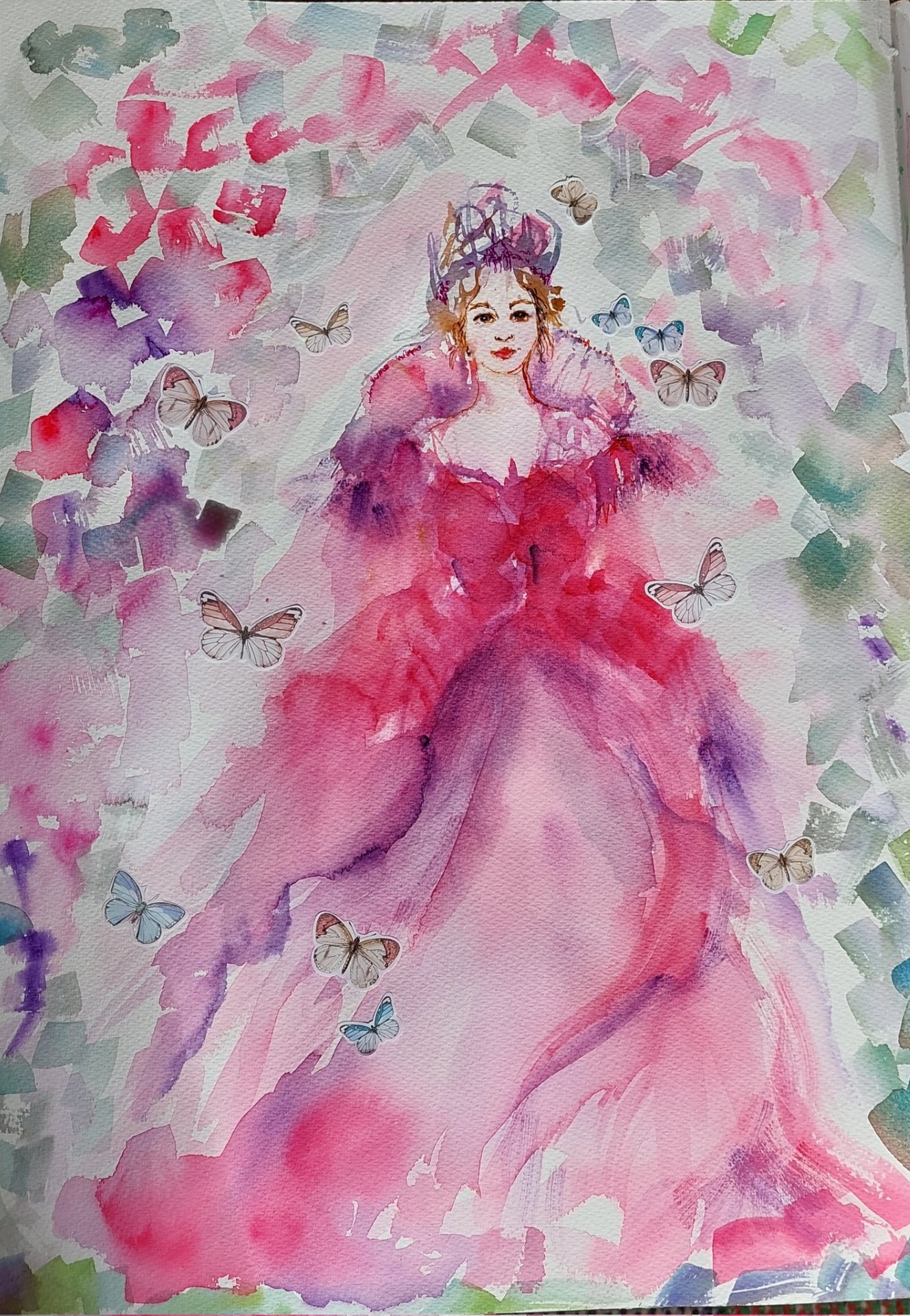 Hän on saanut MurKarhulta IhanUudet vesivärit ja maalannut itselleen juhlamekon MansikkaPalatsin kruunajaisjuhlaan.